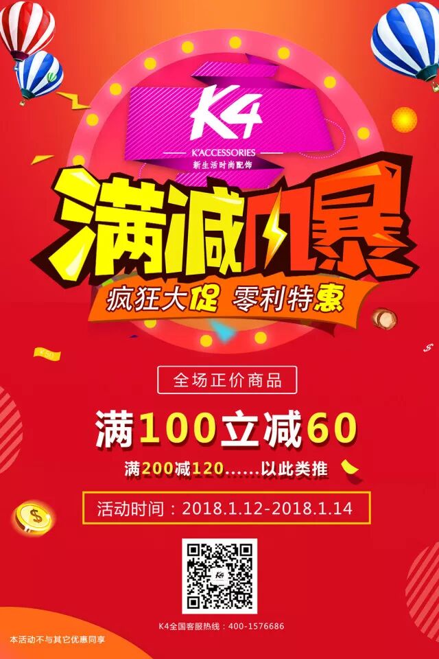 K4满减风暴来袭,满100狂减60!